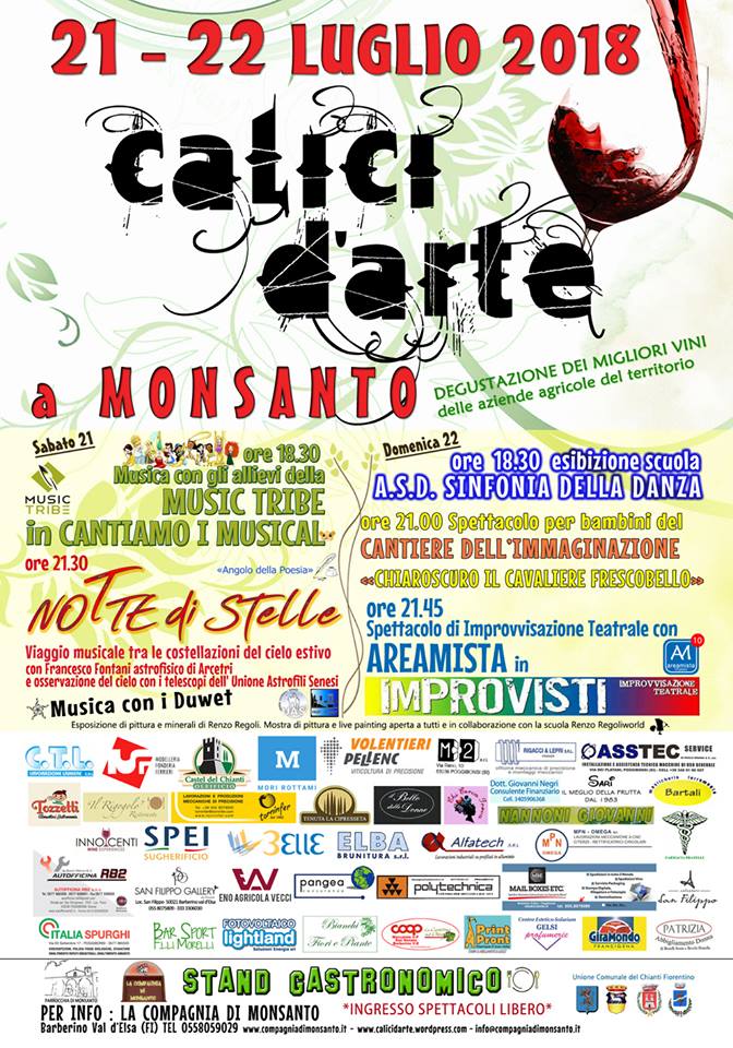 Sabato 21 e domenica 22 luglio 2018 Piazza Don Ugo Cianferoni a Monsanto sarà teatro di una due giorni imperdibile, dove la promozione del territorio si unirà all’arte con spettacoli dal vivo per tutti i gusti e tutte le età.