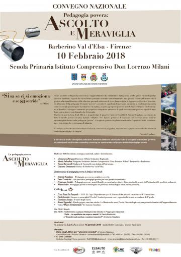 Sabato 10 febbraio 2018 a partire dalle ore 9.00 presso la Scuola Primaria di Barberino Val d'Elsa, l'Istituto Comprensivo Don Milani con il patrocinio dell'Unione Comunale del Chianti Fiorentino organizza il Convegno Nazionale Pedagogia Povera: Ascolto e Meraviglia.