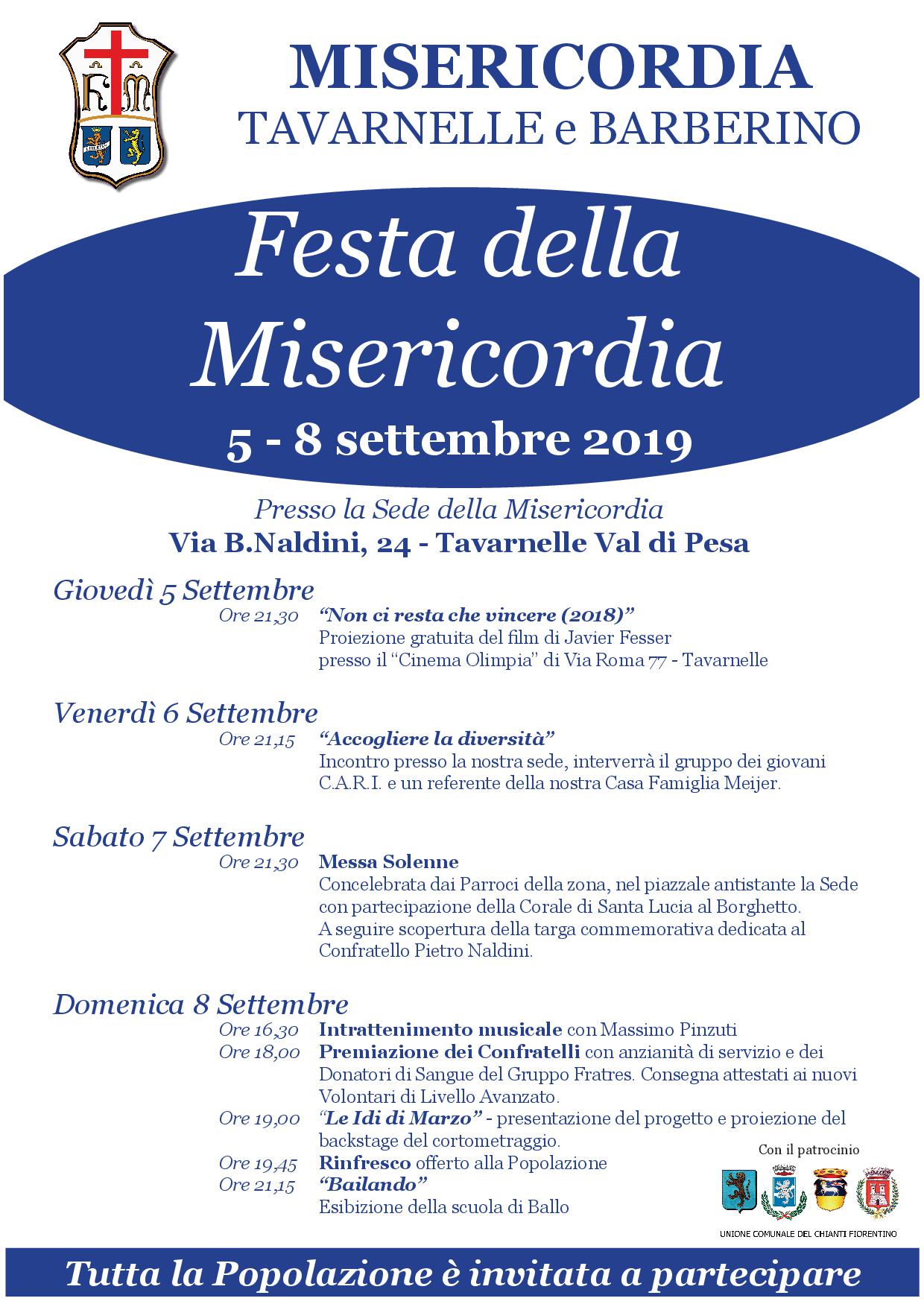 La Misericordia di Tavarnelle e Barberino presenta il programma della "Festa della Misericordia" 2019, che si svolgerà dal 5 all'8 settembre 2019.