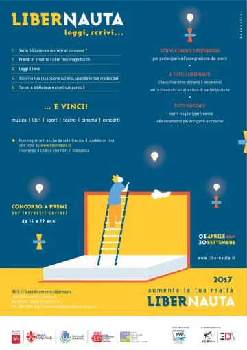 E' in partenza la XVII edizione del concorso LIBERNAUTA dedicato ai ragazzi dai 14 ai 19 anni che ha l'obiettivo di promuovere il gusto per la lettura attraverso un rapporto piacevole e quindi continuativo. Il concorso si svolgerà dal 3 aprile al 30 settembre 2017, ed è promosso da S.D.I.A.F. e S.D.I.M.M. con il Patrocinio della Regione Toscana.