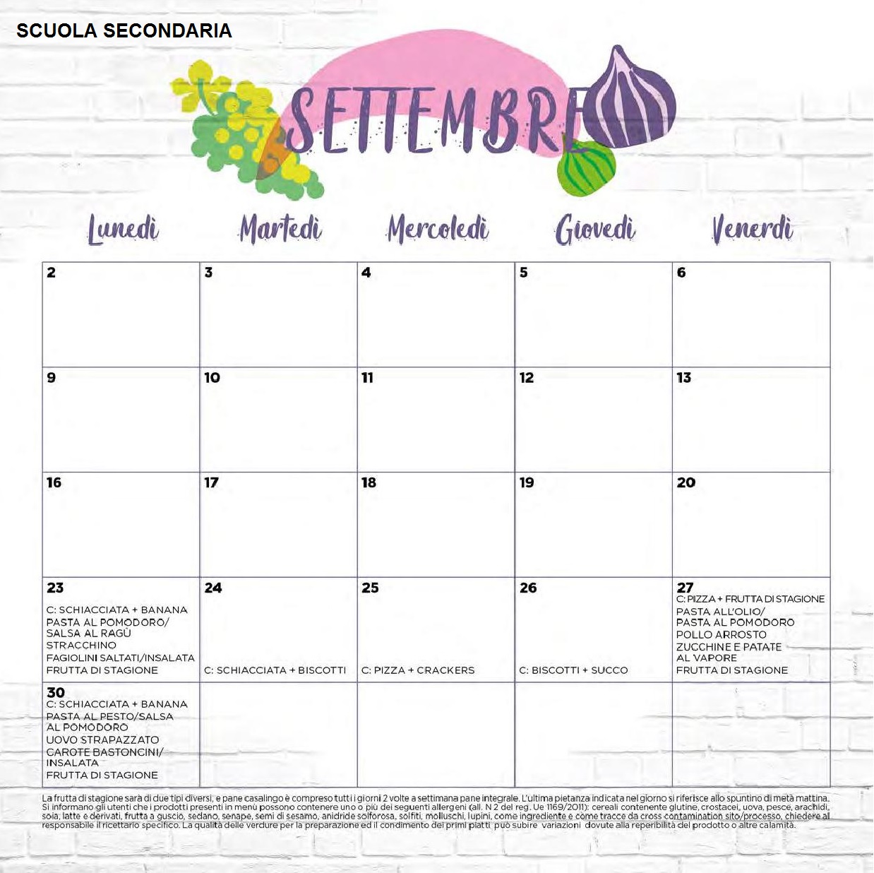 In allegato sono disponibili i menù dei mesi di settembre/ottobre per: