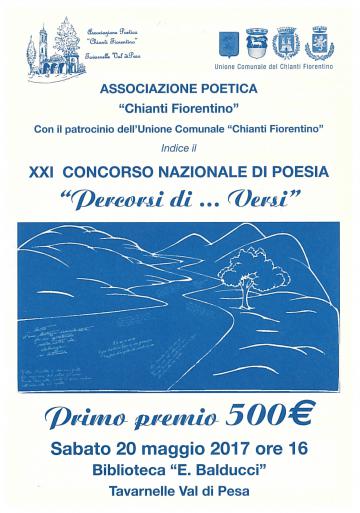 Sabato 20 maggio 2017 alle ore 16.00 presso la Biblioteca "E. Balducci" di Tavarnelle Val di Pesa, l'Associazione Poetica Chianti Fiorentino con il patrocinio dell'Unione Comunale del Chianti Fiorentino, invita tutti alla premiazione dei vincitori del concorso di poesia.
