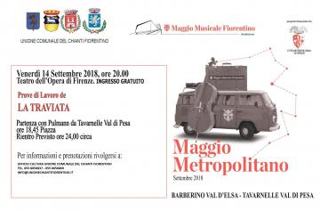 L'Unione Comunale del Chianti Fiorentino, grazie al progetto Maggio Metropolitano realizzato in collborazione con la Fondazione Maggio Musicale Fiorentino e finanziato dalla Città Metropolitana di Firenze, offre la possibilità di partecipare gratuitamente alle prove di lavoro de "La Traviata" che si terranno venerdì 14 settembre 2018 presso il Teatro dell'Opera di Firenze.